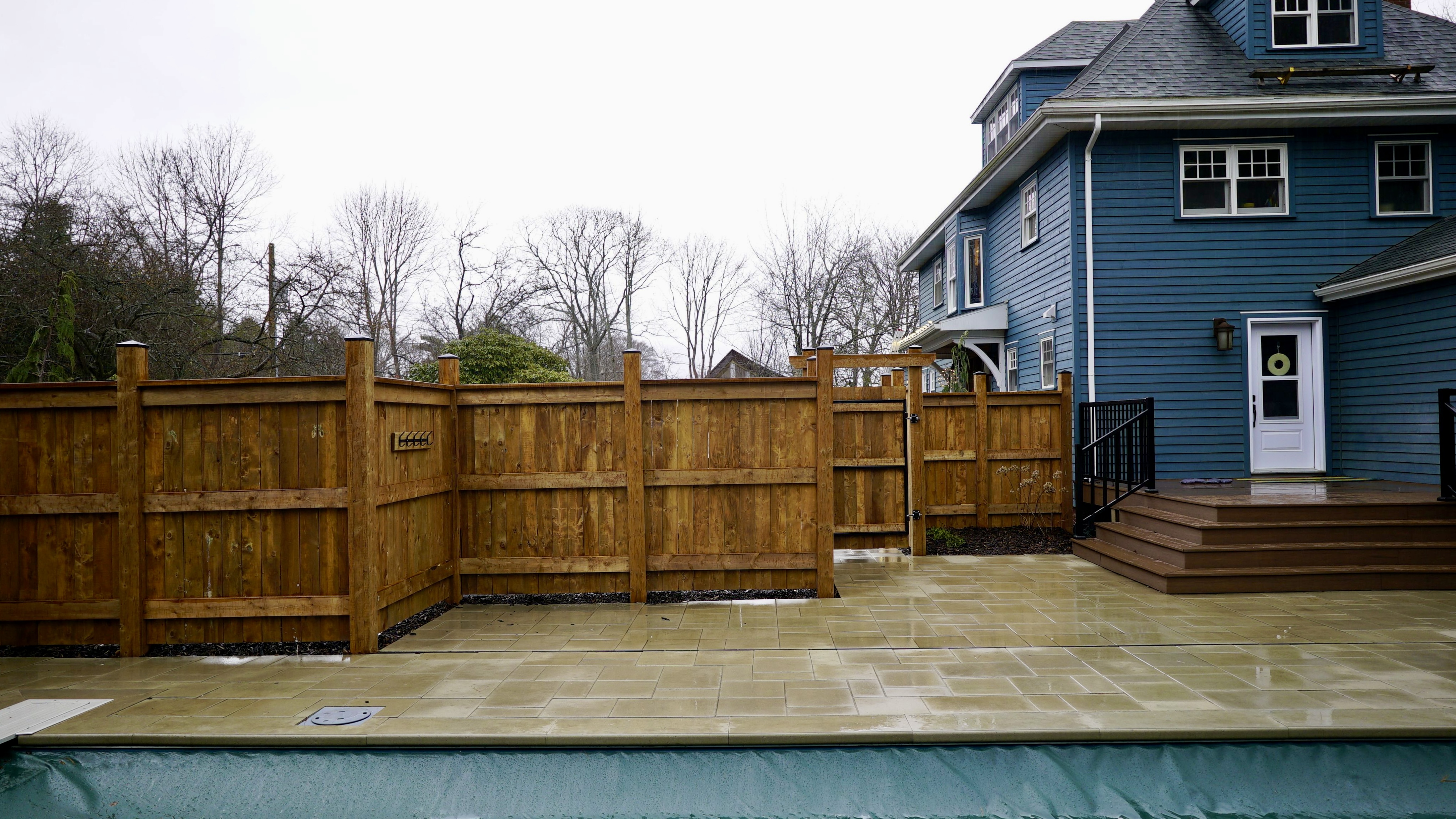 The Kirk Road Project, located in the South End of Halifax, transforms a two-lot property into a resort inspired outdoor environment. Defined by a beautifully integrated pool and an expansive patio built with Permacon Melville pavers in a sleek tan finish. A new composite deck, a secondary side patio, and a combination of decorative and wooden fencing shape the site, while extensive softscaping introduces layers of tree plantings and diverse vegetation throughout the landscape. The project also features a newly paved asphalt driveway and pool shed, all supported by wide-ranging sod installation that completes a soccer field and unifies the property into a cohesive, highly functional outdoor setting.